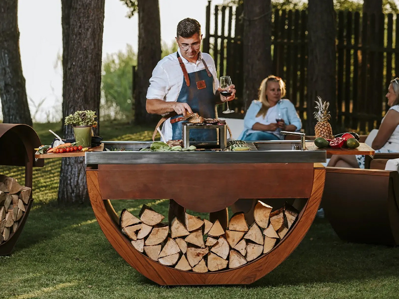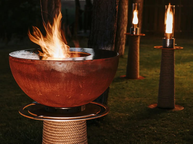 Das Angebot reicht von brennholz- oder holzkohlebetriebenen Öfen, Feuertischen und Feuerstellen über verschiedenste Gartenleuchten und Teak-Sitzmöbeln mit außerordentlichem und einzigartigem Design.
